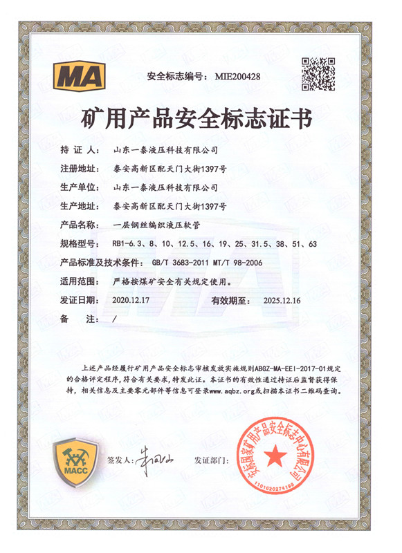 山東一泰液壓科技有限公司,坐落于山東省泰安市國家高新技術(shù)產(chǎn)業(yè)開發(fā)區(qū)配天門大街1397號,總占地面積6萬6千多平方米,總建筑面積4萬多平方米。公司注冊資金7500萬元,資產(chǎn)值3億元。公司始終專注于超高壓石油鉆探軟管、柔性節(jié)流壓井軟管、井控高壓耐火軟管總成、高端機械軟管、以及礦用液壓管體等配套產(chǎn)品的研發(fā)和生產(chǎn)。產(chǎn)品廣泛用于陸地和海洋石油鉆井、勘探、開采、輸送等領(lǐng)域;同時還為軍用系列、大型船舶系列提供了優(yōu)質(zhì)產(chǎn)品的供應(yīng)保障和信任服務(wù)。